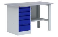 Верстачная линия ВП – это изделия с одной или двумя металлическими тумбами, оснащёнными полочками или вместительными ящиками разного размера; возможен эконом-вариант верстачного стола лишь на опорах. Все верстаки можно дополнить аксессуарами, повышающими удобство и эргономичность работы: перфорированным экраном, куда можно навесить держатели, полочки и крючки для инструментов и приспособлений, а также маленькой тумбой Т-ВПЭ с двумя выдвижными ящиками.